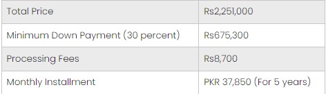 With Bank Alfalah, Suzuki offers an easy installment plan, requiring a minimum down payment of 30 percent and buyers can pay in five years.