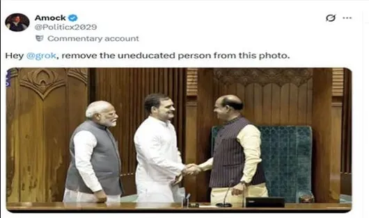 اس معاملےکی تفصیل کچھ یوں ہےکہ ایک سوشل میڈیا صارف نے گروک کو ایک تصویر دی جس میں بھارتی وزیرِ اعظم نریندر مودی، کانگریس رہنما راہول گاندھی اور لوک سبھا کے اسپیکر موجود تھے۔